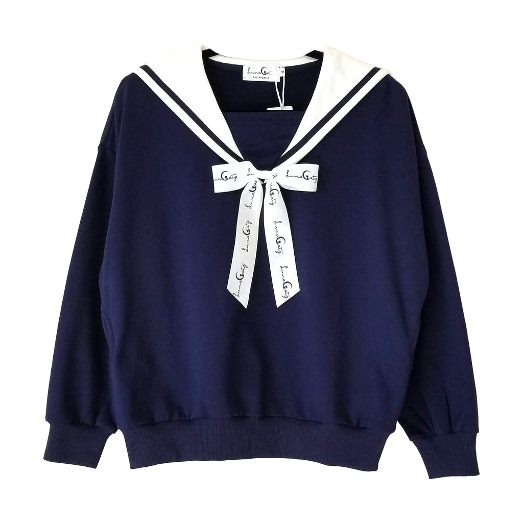 "Doki Doki" Heart Sailor Collar Sweatshirt - Navy