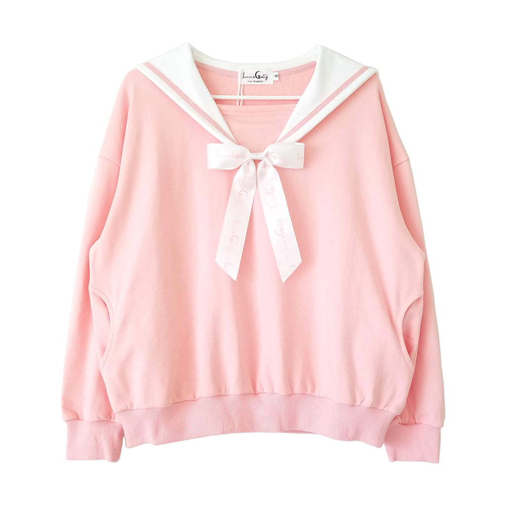 "Doki Doki" Heart Sailor Collar Sweatshirt - Pink