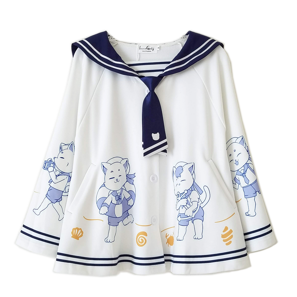 "Let's Sail" Cats Cape with Sailor Collar | Captain and Crew Print